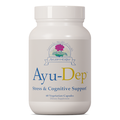 AYU-DEP™ is a proprietary blend based upon the herb Crocus sative, or saffron. Saffron finds many uses in Ayurvedic, Unani, Chinese, and Tibetan medicine. Saffron has mood-elevating effects, and was used extensively by Mogul Kings of India for this purpose. It is known to enhance memory as well as sexual desire. Withania Somnifera (Ashwagandha), Centella Asiatica, Bacopa Monnieri, and Mucuna Pruriens are considered to be brain tonics and are classified as rasayanas. Rasayanas are considered to rejunvenate the nervous system and promote tranquility. Berberis Aristata supports an balances neurotransmitter production. Overall, Ayu-Dep™ has mood-lifting, soothing and rejuvenating properties.