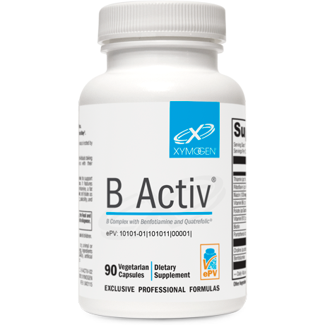 B Activ® contains the entire spectrum of B vitamins to support adrenal, neurological, and stress-related functions. It features activated forms of vitamins B2, B6, and B12; benfotiamine, a fat soluble, more physiologically active form of thiamin; and folate as Quatrefolic®, which is proven to have greater stability, solubility, and bioavailability over calcium salt forms of 5-MTHF.*
