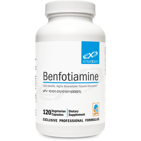 Benfotiamine is a lipid-soluble derivative of thiamin that demonstrates improved absorption and duration of activity compared to water-soluble thiamin. Benfotiamine activates transketolase activity, thereby facilitating conversion of harmful glucose metabolites and positively affecting AGE formation. It supports peripheral nerve health and may support vascular health, including the microvasculature of the retina and kidney. Benfotiamine is also an excellent way to improve thiamin status.*