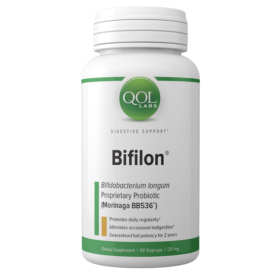 If you’re like millions of Americans, you experience episodic digestive upsets such as constipation, diarrhea, abdominal discomfort, gas, and bloating. Many digestive troubles can be traced to diet. However, there’s another culprit: a lack of good bacteria. Some beneficial bacteria are critical to proper digestion and elimination — yet most Americans are sorely lacking in these “ good bugs.” Luckily, there’s a simple and totally natural way to restore balance to your digestive tract: probiotics. Bifilon® is a probiotic supplement that features one of the most researched and effective strains in the world: Morinaga BB536®, a proprietary strain of Bifidobacterium longum.