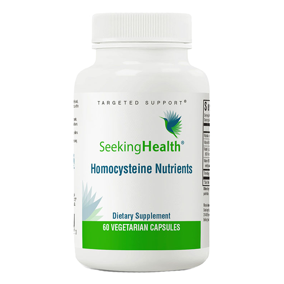 HomocysteX Plus by Seeking Health supplies bioactive forms of four essential Bvitamins together with betaine (also known as trimethylglycine or TMG) to synergistically support methylation processes and normal homocysteine metabolism. The body's methylation process is vital for formation of essential cell components such as proteins, nucleic acids found in DNA and RNA, and phospholipids that form nerve cell membranes. By transferring methyl groups (three hydrogen atoms bonded to a carbon atom, known as CH3) from one molecule to another, methylation turns on genes, activates enzymes, drives detoxification reactions, influences hormone secretion, and helps maintain normal metabolism of homocysteine, a potentially harmful amino acid metabolite. Unfortunately, poor nutrition, oxidative stress and various other factors can impair methylation processes throughout the body.*