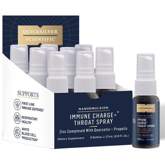 A highly bioavailable zinc-based spray designed to provide immune support in the throat. Zinc combined with quercetin, luteolin, and propolis helps increase zinc levels in the throat. Convenient Immune Charge+ Throat Spray Pack of 9 is perfect for travel, seasonal exposures, and year-round fortification of defenses.