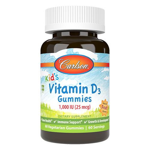 Kid's Vitamin D3 Gummies provide 1,000 IU (25 mcg) of vitamin D3 per gummy, which promotes teeth, bone, and muscle health; healthy immune and cardiovascular system function; and calcium absorption.* Each bottle has an assortment of strawberry, lemon, and orange flavored vegetarian gummies. Kid's Vitamin D3 gummies are a stress-free way for your children to get their vitamin D every day.