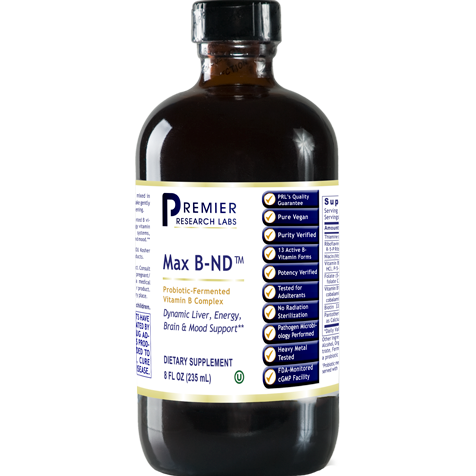 Max B-ND™ is a nutritional industry first - with never before available probiotic-fermented B vitamins. This product contains a high-energy B vitamin complex that delivers premier nutritional support.* Each 1/2 tsp. supplies high energy vitamin B forms including B5 as pantothenic acid, vitamin B2 in the riboflavin-5-phosphate form and more.