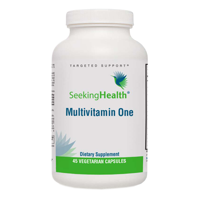 Multivitamin One by Seeking Health provides a wide variety of nutrients in wellabsorbed or active forms in a convenient capsule format. Unlike our other encapsulated multivitamins, this pared-down formula packs essential nutrients and herbal support into a single capsule taken just once daily. This unique multivitamin also contains methylated B vitamins (i.e. methylcobalamin and methylfolate) to support the body's methylation processes. Daily supplementation of essential macro- and micronutrients, such as those included in Multivitamin One, may help contribute to proper nutrition and optimal health as part of a well-balanced nutritional program.*