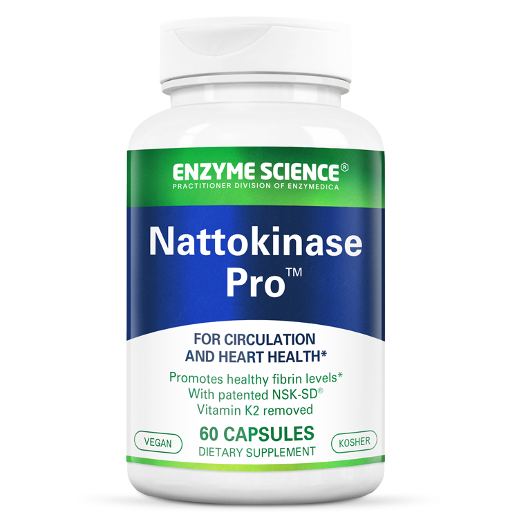 Nattokinase Pro™ contains NSK-SD®, the first nattokinase derived from the food natto, to be introduced to the US market. In combination with nattokinase, a comprehensive blend of supportive enzymes works synergistically to promote total body wellness and cardiovascular health.* Nattokinase helps to maintain healthy levels of fibrin by encouraging healthy blood coagulation for an optimally functioning cardiovascular system.* Natto naturally contains high levels of vitamin K2, which is essential for blood coagulation. Nattokinase NSK-SD is processed in a unique way to remove Vitamin K2 for those who should restrain from consuming this nutrient.