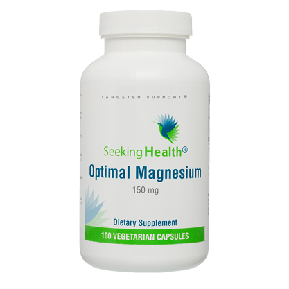 Optimal Magnesium by Seeking Health provides 150 mg of high potency magnesium per vegetarian capsule. Magnesium is an important and abundant mineral naturally present in the body, which acts as a cofactor in hundreds of enzymatic processes and systems. It helps regulate biochemical reactions in the body, including protein synthesis, muscle and nerve function, normal sugar and carbohydrate metabolism and healthy blood circulation. Magnesium is involved in normal muscle relaxation by inhibiting calcium influx and smooth muscle contraction. It is also important for energy production, oxidative phosphorylation, and glycolysis. It contributes to the maintenance and development of healthy bone structure and is needed for the synthesis of DNA, RNA, and glutathione, an important antioxidant.*