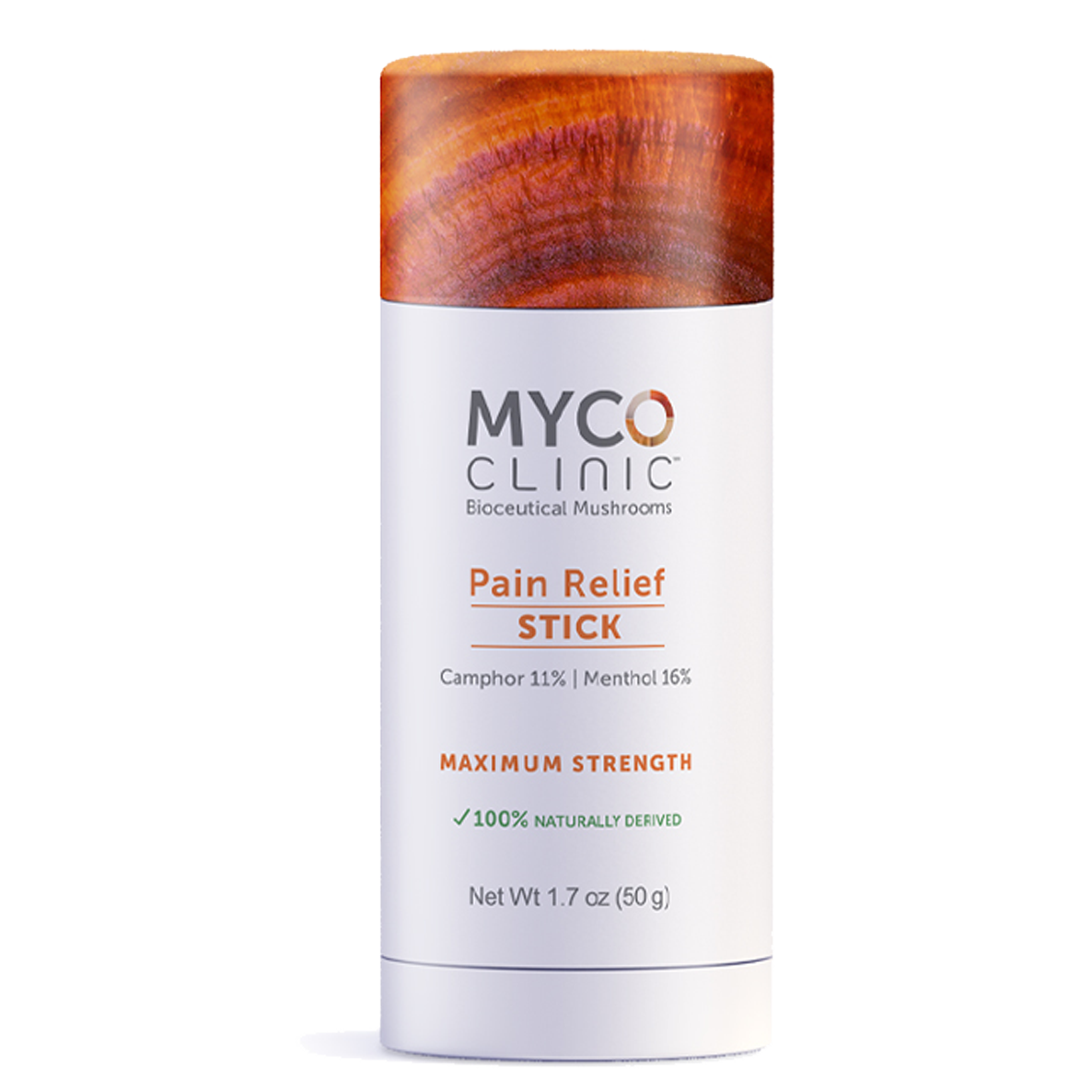 The MYCO CLINIC Pain Relief Stick offers the same high-power formula as our ointment in a convenient stick for a no-mess application. Camphor (11%) and menthol (16%) are combined at full-strength for powerful cooling and heating action alongside functional mushrooms to offer their anti-inflammatory properties.